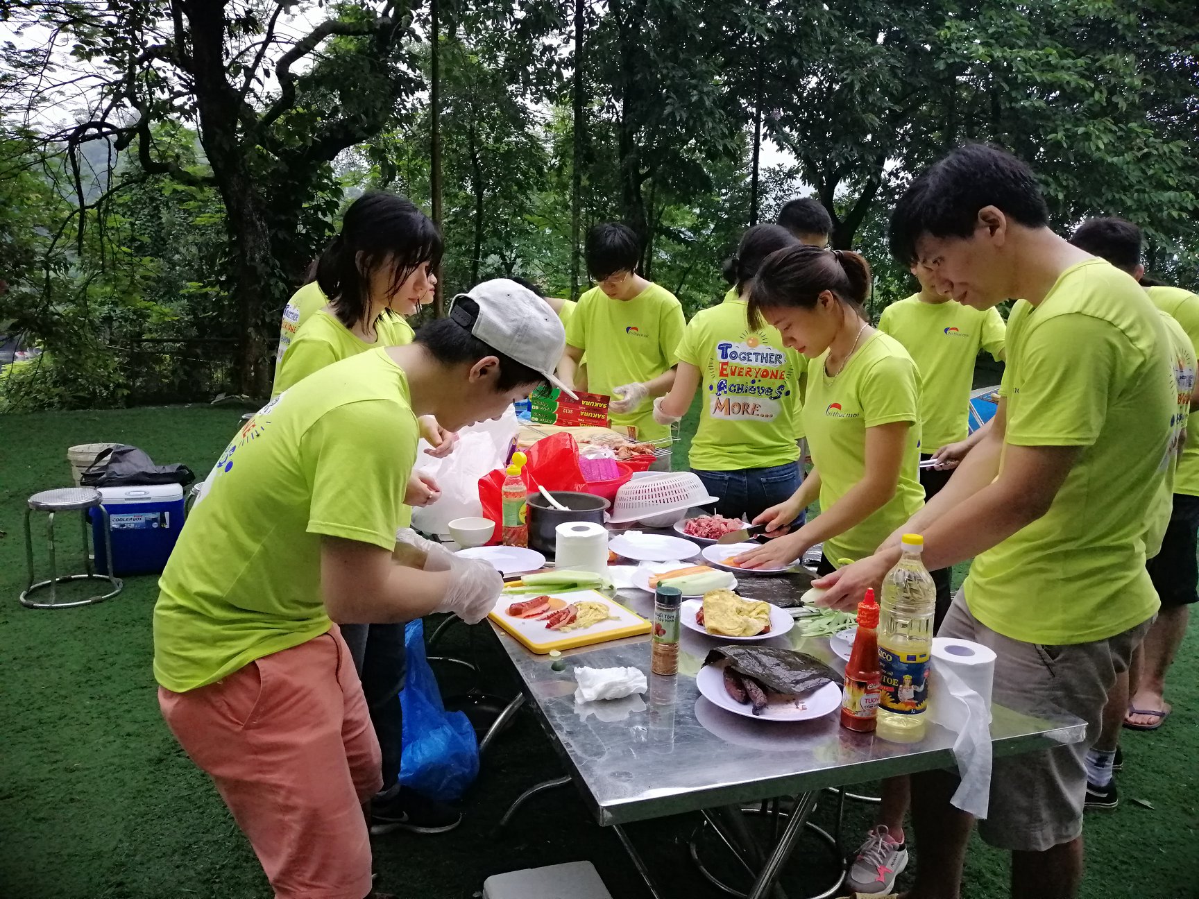 週末に郊外へピックニックを行いました。料理や綱引きなどのゲームで、仕事の不安を解消し、自然に親しむ楽しさに浸っていることができます。